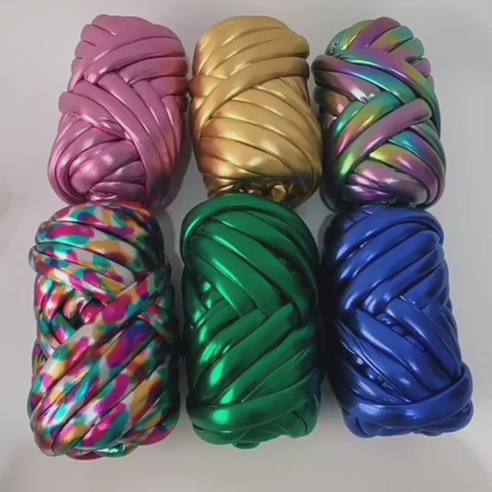 Filato mesh / marshmallow con filo metallico lucido – perfetto per borse e progetti artigianali