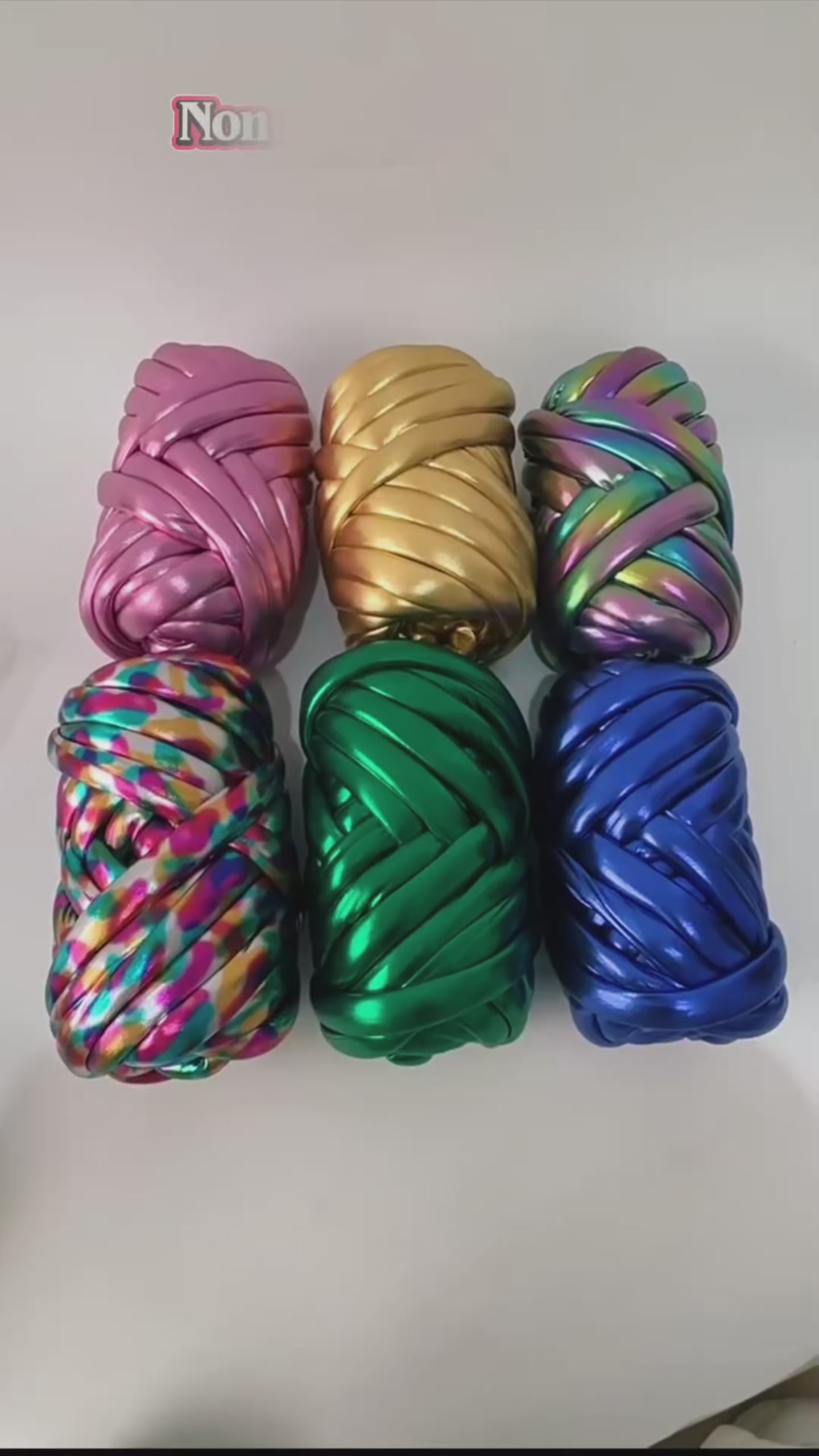 Scopri questo filato speciale “marshmallow mesh” intrecciato con filo metallico lucido e materiali tipo pelle / leather look. Ideale per realizzare borse, cuscini, feltri decorativi, imbottiture creative e dettagli lucidi nei tuoi progetti fai-da-te.