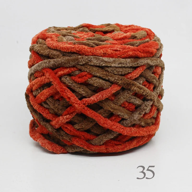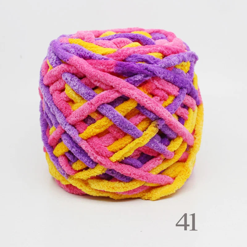 Il filato è indicato come Chenille Cotton Yarn con effetto ice strip; contiene fibre mescolate — la descrizione specifica che ha materiale di tipo polipropilene mélangé o simile. È importante verificare il blend esatto per chi cerca filati completamente naturali. :contentReference[oaicite:0]{index=0}